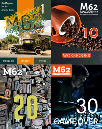 Das Magazin62 – Projekt wurde im Sommer 2020 ins Leben gerufen, um Neueinsteigern die Programme Affinity-Publisher und Affinity-Designer näher zu bringen. Seit mehr als 30 Jahren bin ich als ausgebildeter Mediengestalter und Digitaldrucker im Print- und Webbereich für Druckereien, Bildagenturen und andere Unternehmen tätig. Informieren Sie sich hier über Themen wie Typografie, Buchgestaltung, meine bisher erschienenen Hefte, Literatur und hilfreiche Software. Einige kostenlose Ressourcen warten auf den Einsatz mit Ihrer Affinity Software. Aktuell dreht sich hier alles um die neue Affinity-Studio-Version.