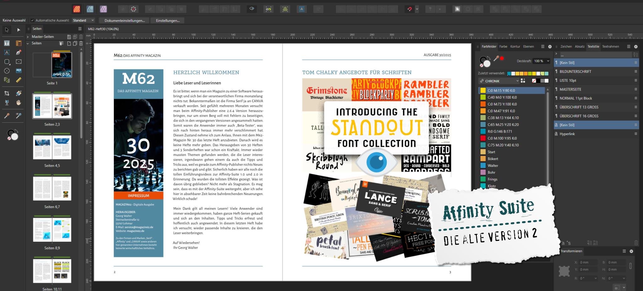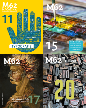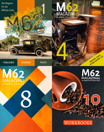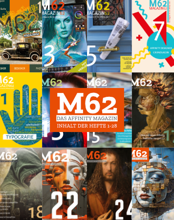 Seit der Einführung von Affinity Studio 3 wird die alte Affinity Suite 2 nicht mehr weiterentwickelt. Man kann sie aber weiterhin unbegrenzt nutzen. Für diese Suite habe ich bis heute 30 Hefte meines M62-Magazins produziert. Die Tutorials, Hilfen und Tipps in diesen Heften können Sie auch für Affinity Studio 3 verwenden! Hier kann ich Ihnen drei Heft-Bundles zu einem tollen Preis anbieten.
