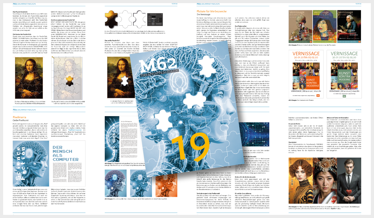 Dieses Heft ist wieder voll von Tipps, Ideen und Hintergrundinformationen. Im Besonderen darf ich auf ein Thema aufmerksam machen, dass immer wieder bei Facebook nachgefragt wird. Wie kann man in der Affinity-Suite ein Puzzle gestalten? Dazu gibt es ein 4-seitiges Tutorial und ein kleines Asset gratis mit dazu. Ich informiere über die „Künstliche Intelligenz“, „Bildunterschriften“ und „Quellenangaben“, Überlegungen bei der Gestaltung von Plakaten und die Gestaltung von „Pixelfont-Überschriften“.