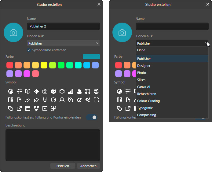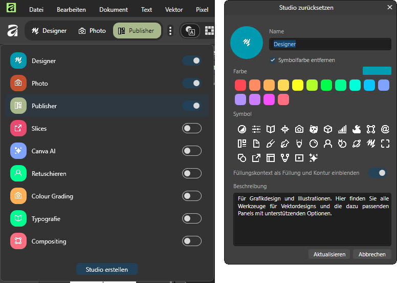 Affinity Studio 3 – Studios anpassen